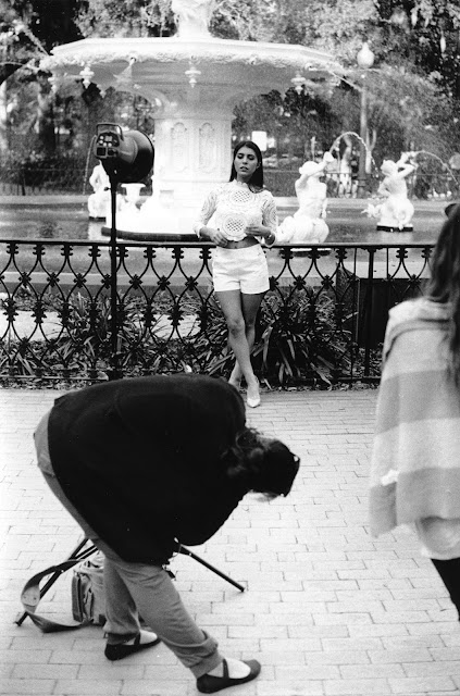 While wandering through Forsyth Park in Savannah, I came across a photoshoot, presumably for some kind of clothing brand. I always get a nice double-chin when being photographed from below, but I'm sure this model looks good regardless of the angle. I used my Pentax LX with a 50mm f/1.4 lens and Kodak Tri-X film. The physical darkroom print is 10"x7".