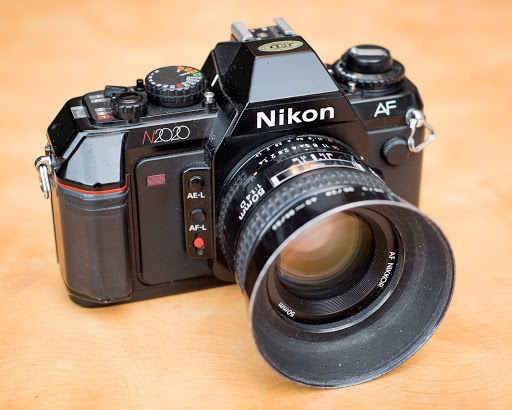 Since it's the year 2020, I thought it appropriate to take a look at the Nikon N2020! The N2020 was released in 1986, and is the first Nikon SLR camera with in-body auto-focus. It's also the last Nikon camera to use their superior, non-italicized logo. I assume the "2020" moniker references the camera mimicking the human eye's ability to focus, or something. My dad owned an N2020 and used it to photograph paintings for the many years that he was an art dealer in downtown Chicago. He gifted me his N2020 a couple years ago, but unfortunately it was in a state beyond repair. I bought the above N2020 from KEH in great condition for a little over $40.