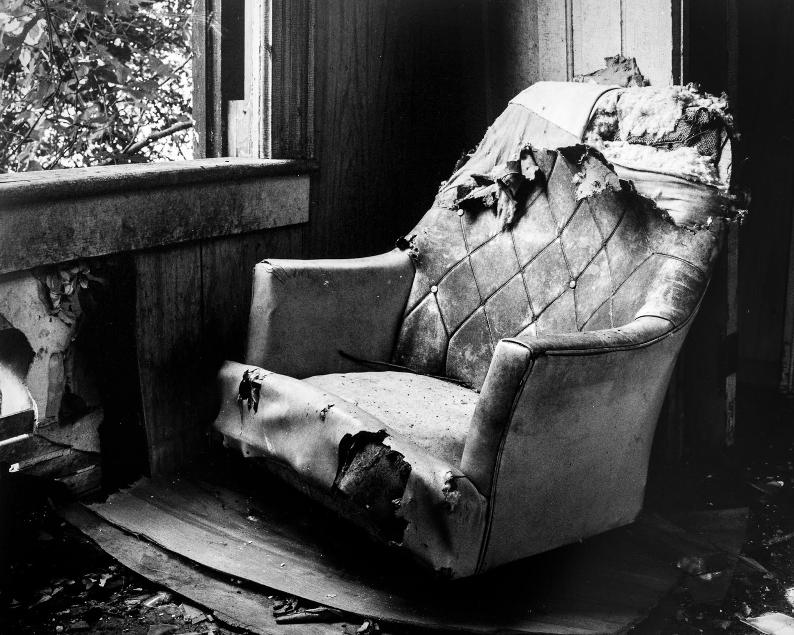 Last week I went back to the State-Line house near Harvard, Illinois, this time with my brother-in-law, Aaron. I was able to re-shoot the armchair you see above. I thought I had a nice negative of it from my first trip, but when I went to make a print, I saw that my camera bag was in the shot! This time I made sure to keep my bag faaaaaar away from the subject. I used my Mamiya C330 with a 55mm lens, on Kodak T-Max 400. The physical print is 11"x14".